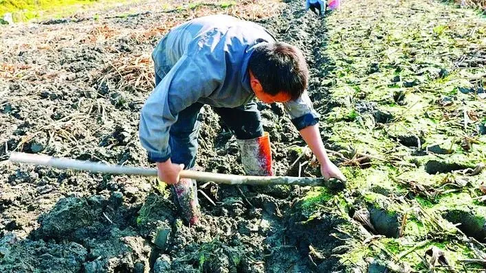 村民忙着采收茨菇。 惠州日报记者黄宇翔 通讯员龙融心 摄