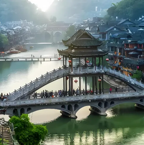 第六:凤凰古城沈从文笔下边城,沱江穿城,吊脚楼倒映水中。夜游沱江,灯影摇曳,酒吧街歌声悠扬。推荐住临江客栈,推窗即见江景。土家腊肉、血粑鸭为必尝美食,南门口小吃街糖油粑粑甜香四溢。