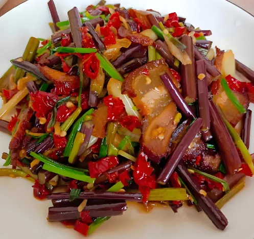 第五美食:腊肉炒蕨菜张家界山珍,腊肉咸香,蕨菜脆嫩。禾田居酒店餐厅供应,人均60元,搭配高山泉水煮饭,回味无穷。