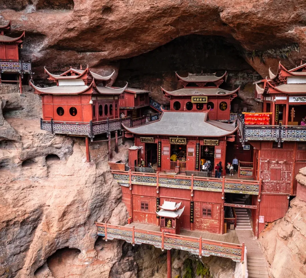 甘露岩寺在崖壁洞里,木头用榫卯卡住,风吹雨打不怕,寺院小,故事多,说是宋明年间就有人修香火,老匾挂着,字有年头,站在洞口看湖面,风一下就把心里那口闷气吹散了。