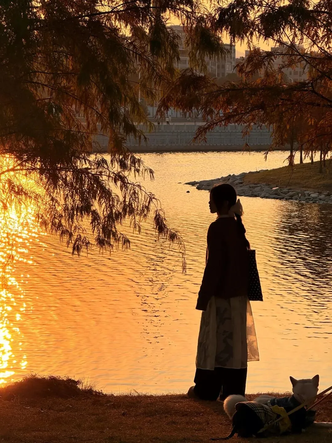 落羽杉分布在湖心岛外围,在这里拍逆光人像,“美拉德”氛围感拉满。