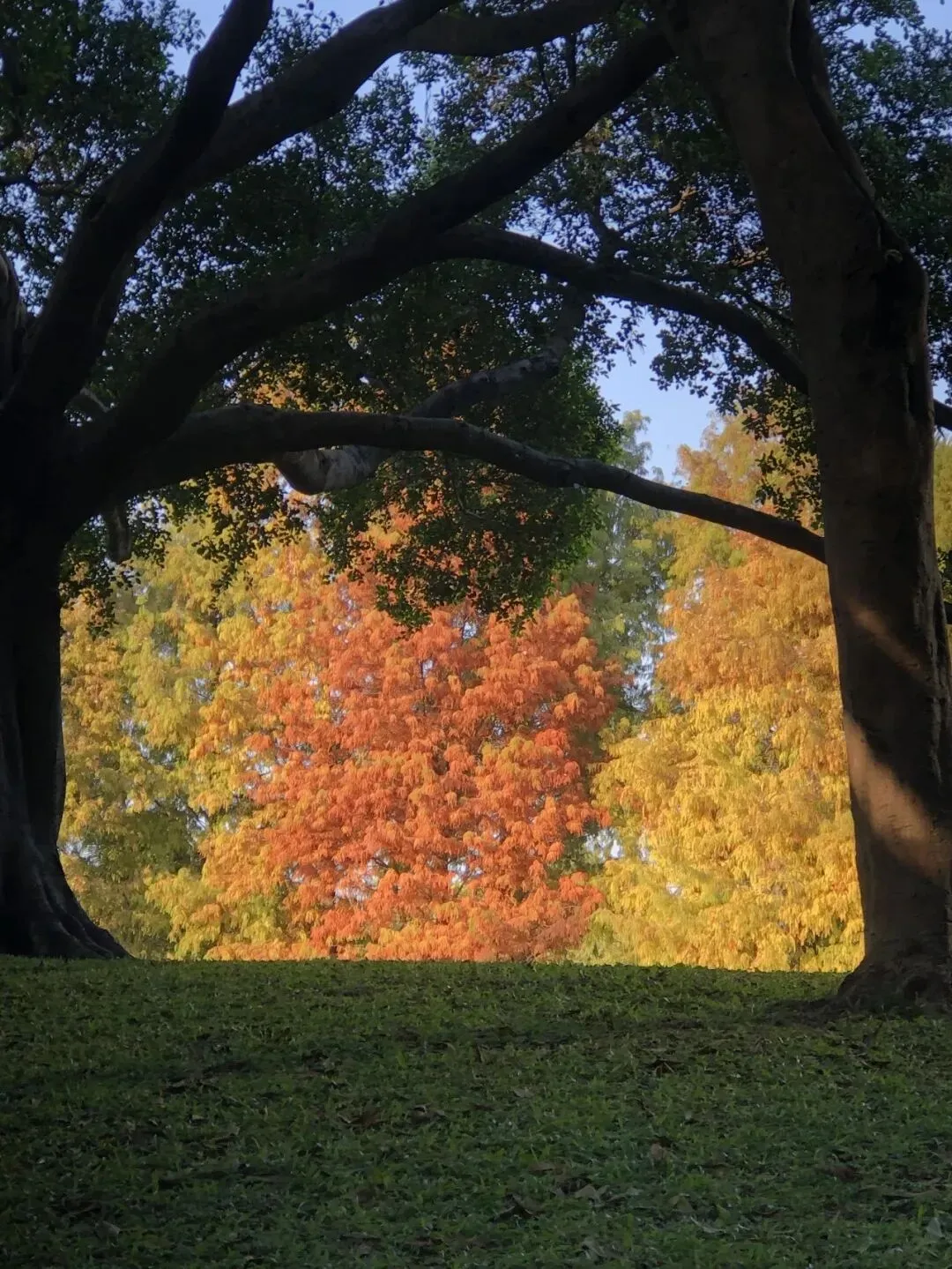 这里是“顶流”红杉地!园博苑的澳门园水域千余株落羽杉临水而立,将橙红、金黄的枝叶肆意挥洒在水面上。青岛园、国际园也有落羽杉。