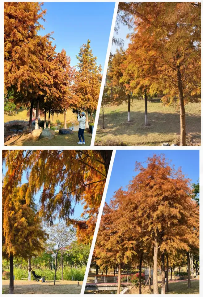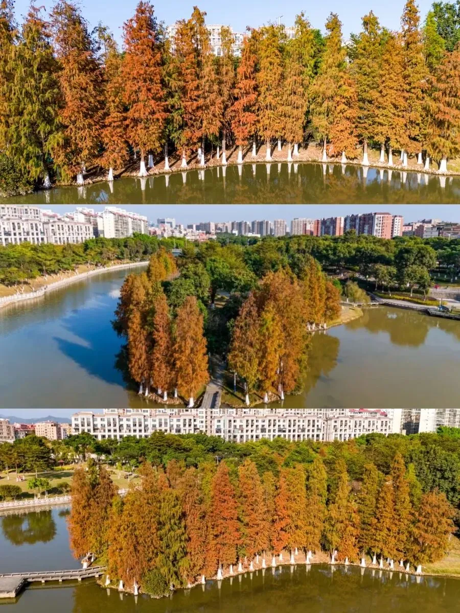 当翔安吹起属于冬天的凉风,大自然也在悄悄点亮它的暖色调调色盘,翔安宋洋公园的落羽杉已悄然开启换色序章。这里的落羽杉正上演着绿、黄、橙、红的四重奏,层层叠叠像打翻了的调色盘,赶紧约上小伙伴,来观赏这片冬日限定美景。