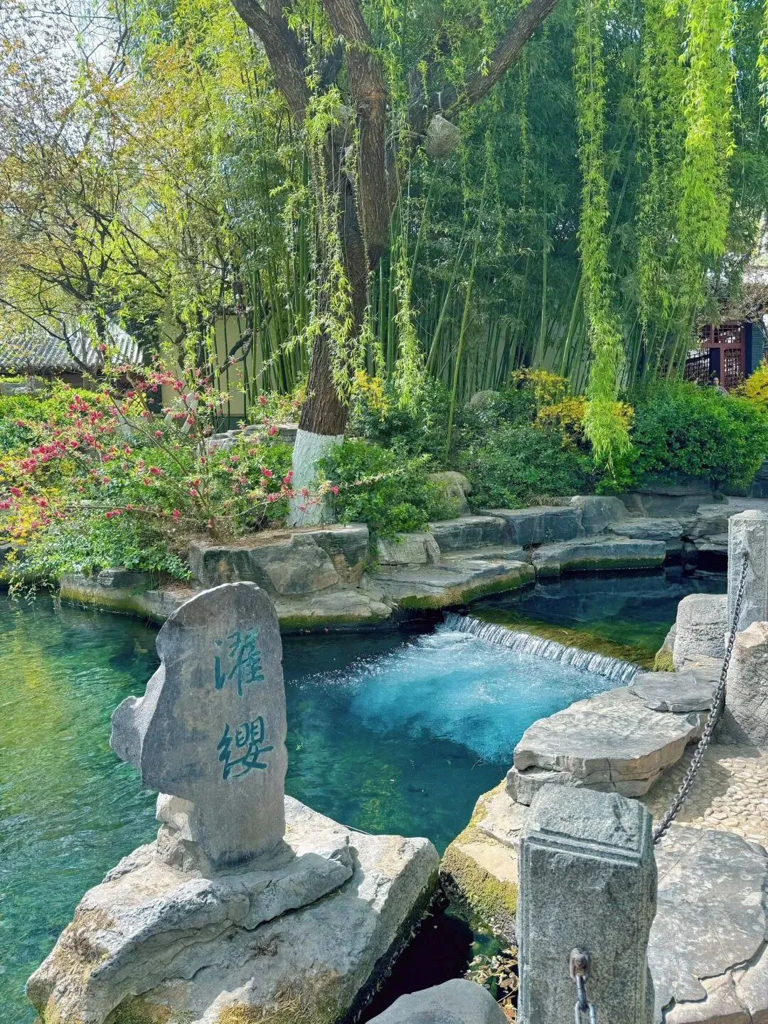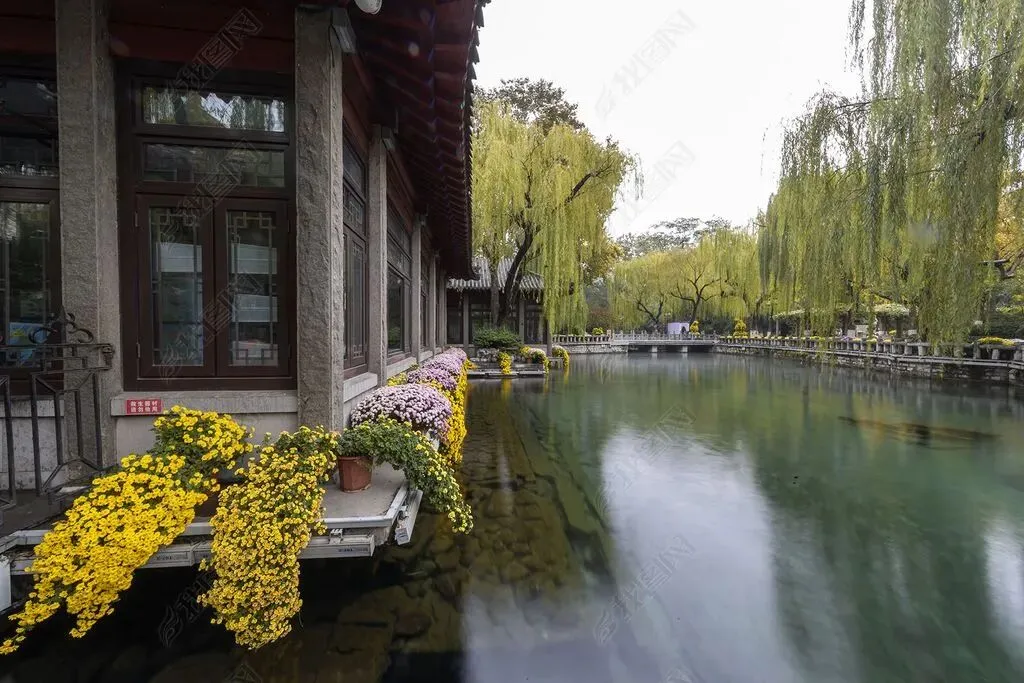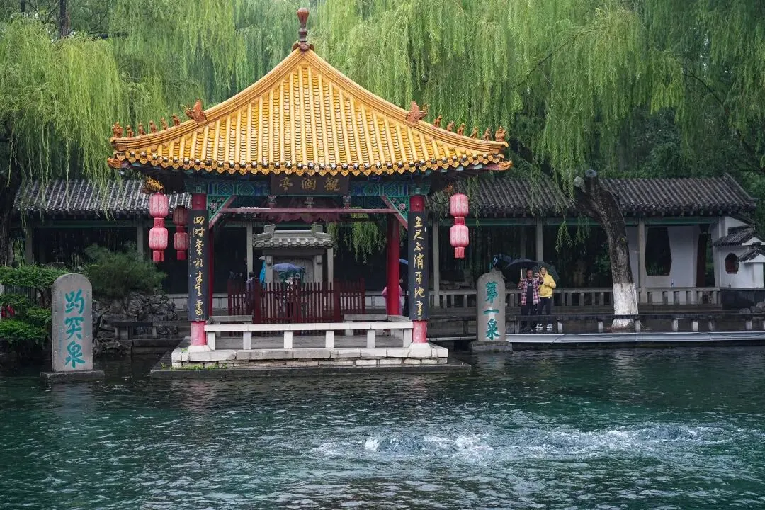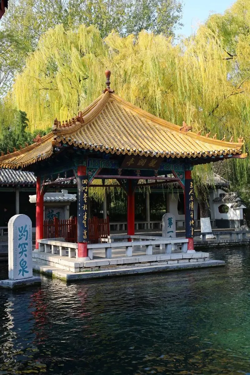 “秋雨黄花瘦,春流漱玉声”,漱玉流韵所指的是漱玉泉。漱玉泉位于趵突泉园内离沧园不远东北方向的一泓碧水,此泉为济南七十二泉之一,漱玉泉边缘柳成荫,泉水淙淙,犹如漱玉,因宋代著名女词人李清照居住于此而闻名于世。
