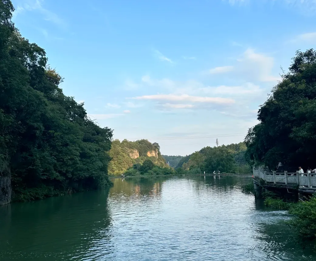 想看自然,天河潭可以排上,溶洞灯光少一点更好看,地下河坐小船,凉气一扑脸,外套要带,上午人少,留出三小时。