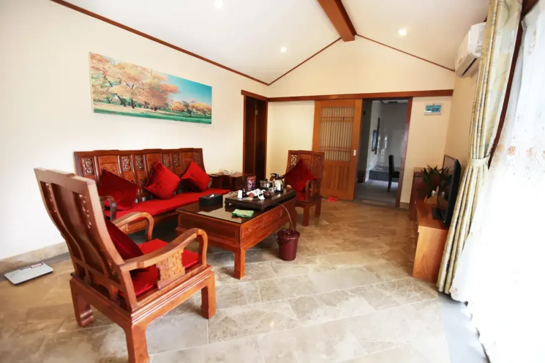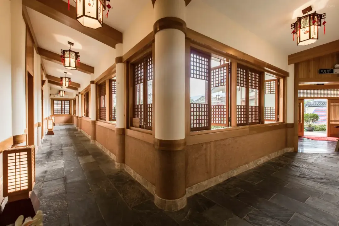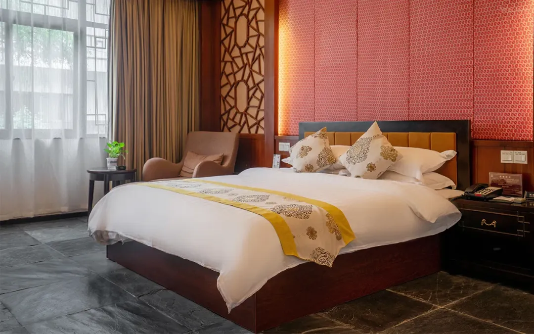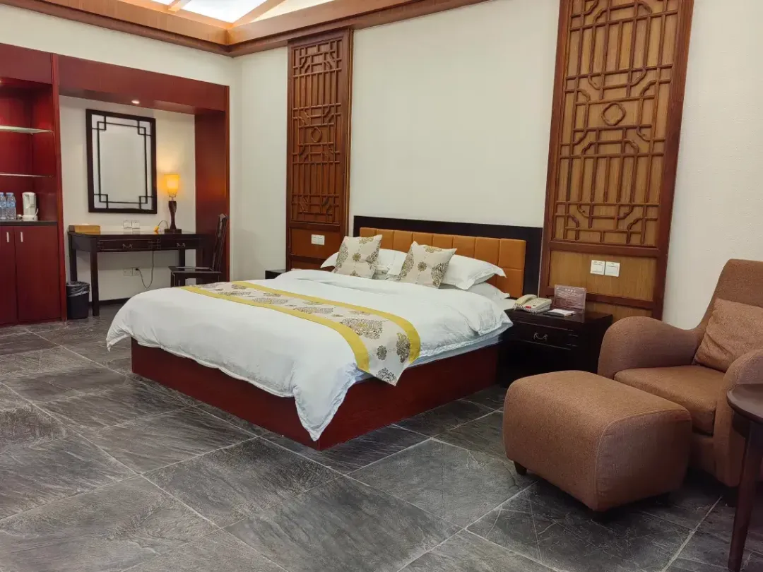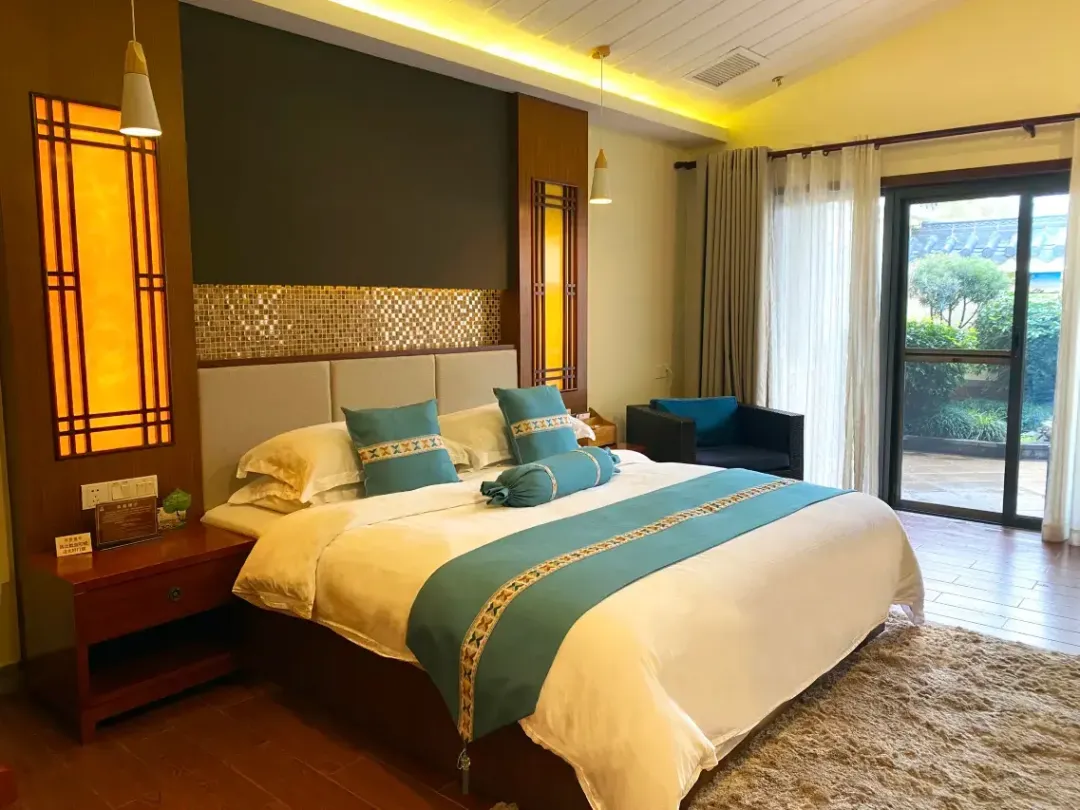 :建筑采用中国特色民居和客家围合的优秀元素设计,从内到外处处展现了中国特色民居和客家风情的独特文化。客房情况 :酒店拥有标准房、豪华套房、庭院套房、温泉套房等多种房型,共计 159 间,可提供床位近 300 个,能满足不同客人的需求。