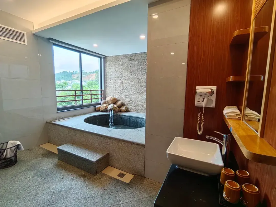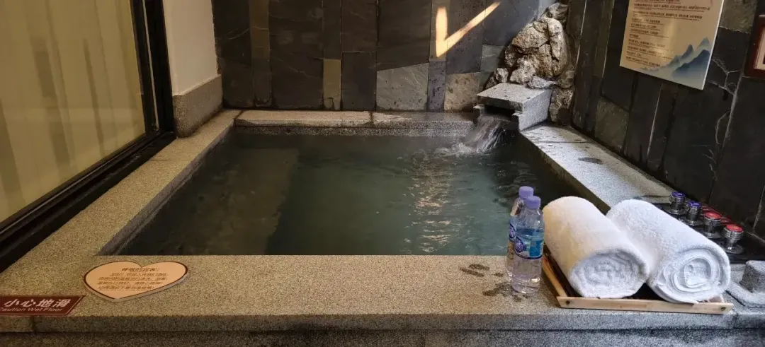 :酒店将纯天然温泉引入客房室内以及露天温泉泡池,让客人随时都能享受温泉养生沐浴。这里的温泉水富含硒和偏硅酸等矿物质,对人体健康有益。 - 入住体验
