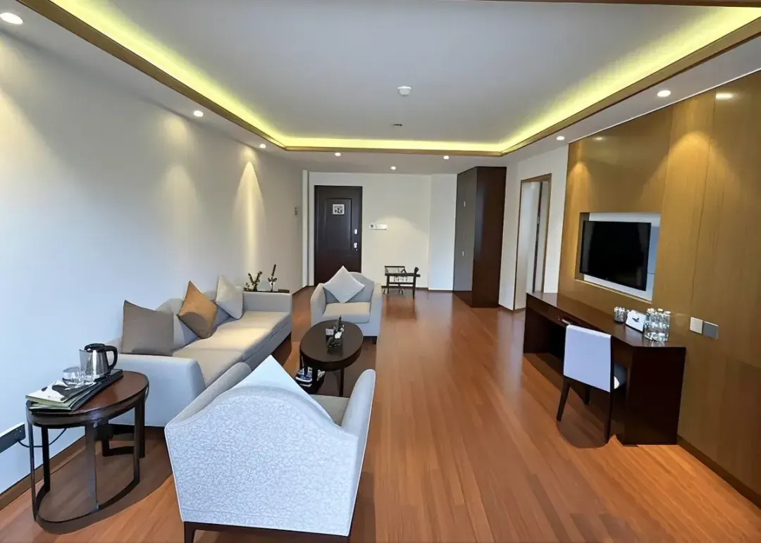 :酒店环境优美,背靠山林,空气清新,有贴心的摆渡车服务,工作人员礼貌、贴心又专业,能为客人提供温馨舒适的入住体验。