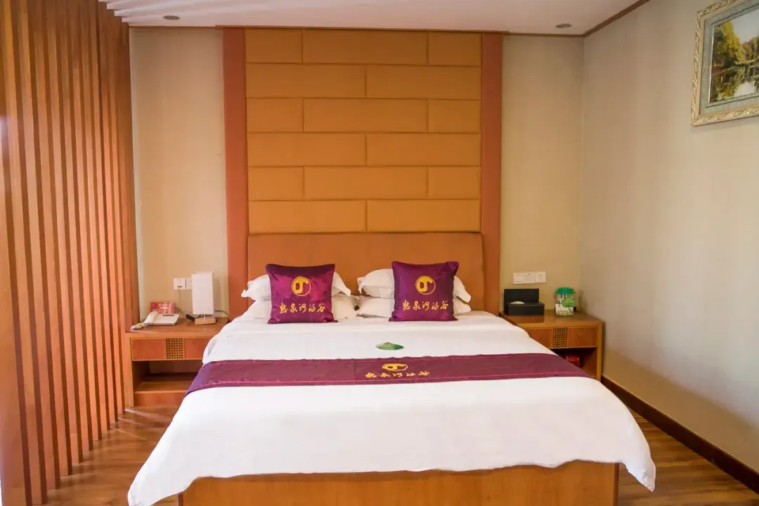 :酒店设有东江源会议中心,还有茶室、KTV、篮球场、桌球室、乒乓球室、桑拿浴室、足浴、按摩室等休闲娱乐设施,同时配备免费公共停车场。此外,酒店内还设有中餐厅、酒吧,能为客人提供丰富的餐饮选择。 - 温泉特色