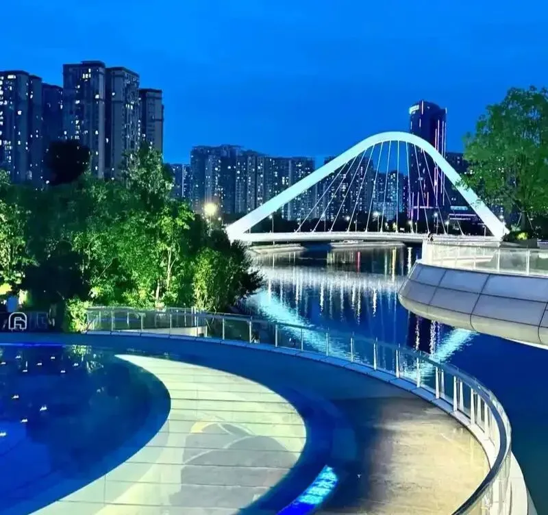 赛博朋克风的桥身灯光,夜晚拍照极具科技感,是成都的新地标。