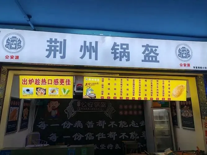 第二样是公安锅盔。这玩意儿荆州人当早饭吃,外酥里嫩,比脸还大。师傅把发面擀成薄片,抹上肉末香葱,贴在炭火炉壁上烤。滋滋冒油的时侯最馋人,外壳焦脆得掉渣,一口咬下去内瓤暄软,肉香和葱香混一块儿往鼻子里冲。5块钱一个,站路边啃,烫得龇牙咧嘴,满手都是油。冬天吃这个,从嘴巴一直暖到胃里,比什么暖宝宝都管用。