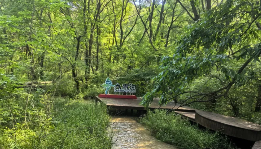 清晨大青沟走木栈道,林子挡风,鸟声清亮。