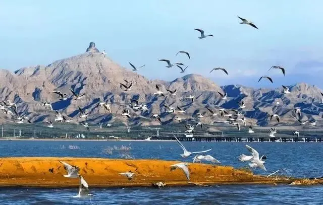 想看水天一色,就去哈素海,鸟多,天晴时水面像镜子,黄昏风一停,拍照全是大片。