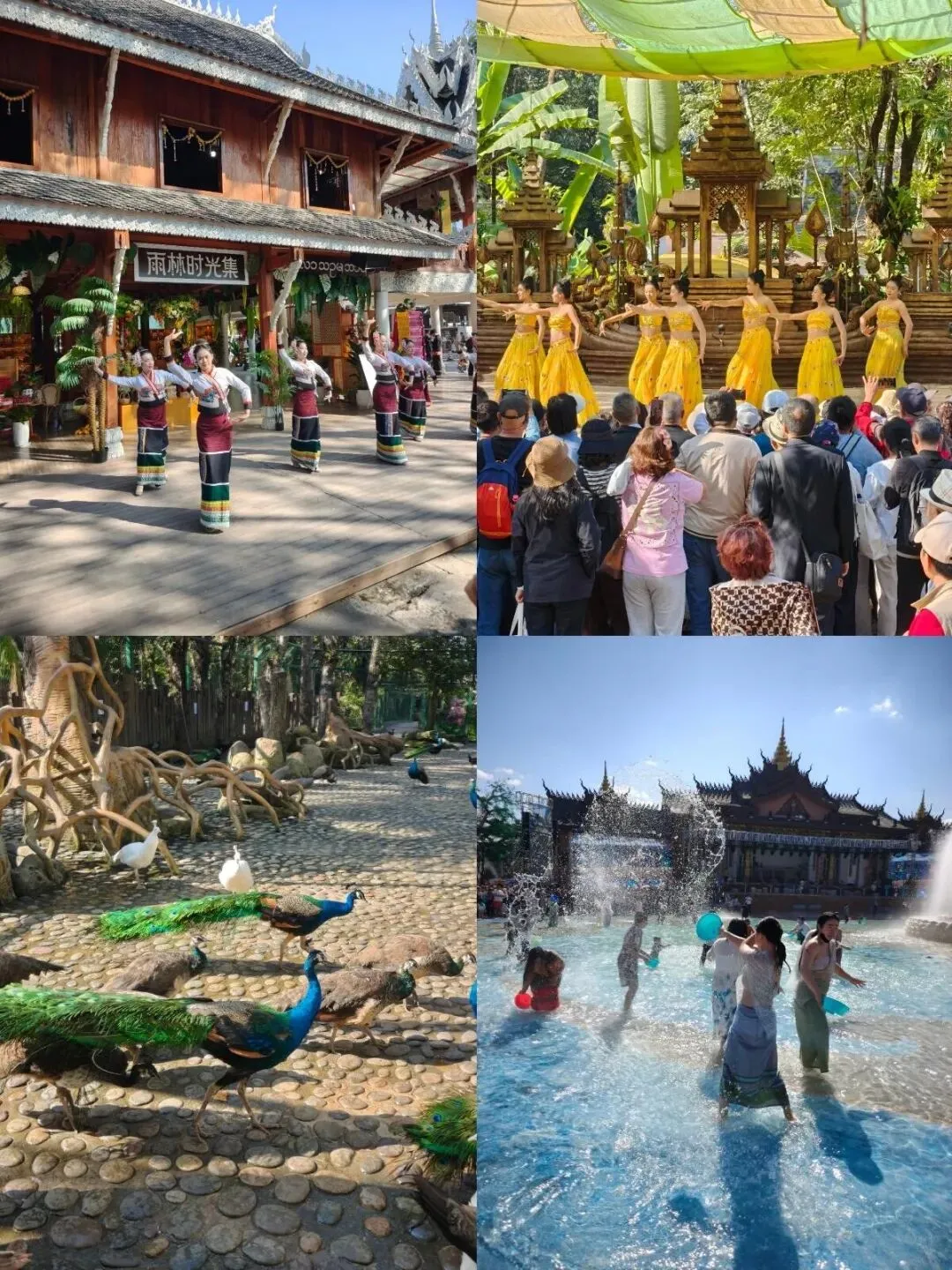 - 去傣族园:参加泼水节表演(即使不是节日也有),拿个小盆和当地人一起泼水,最后吃傣味烧烤(烤五花肉 + 菠萝饭绝配);