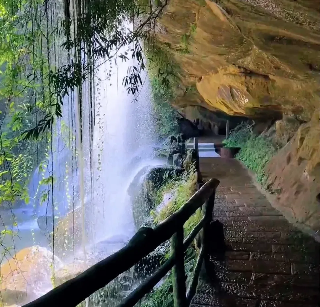 十丈洞瀑布高,水一口气往下撂,夏天最带劲。