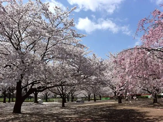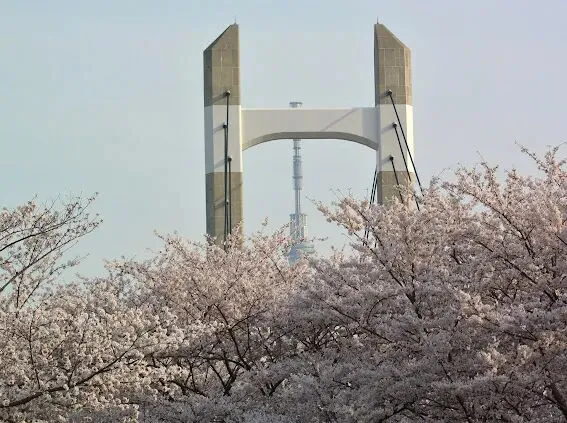 木场公园腹地广大,视野辽阔,还有东京都现代美术馆、植物园等设施,可说是都会中的绿洲。园内种植著染井吉野樱、大岛樱、八重樱、枝垂樱等多种樱花树,由于花期不同,来访游客能长时间欣赏到各个品种樱花交互盛开的美丽景色;木场公园赏樱迷人之处不仅于此,在这里还能捕捉到樱花、东京晴空塔与贯穿公园南北的木场公园大桥同框的景象,东京的象征建筑物与春丽樱色交叠,游客拍照时可取个好角度留念。