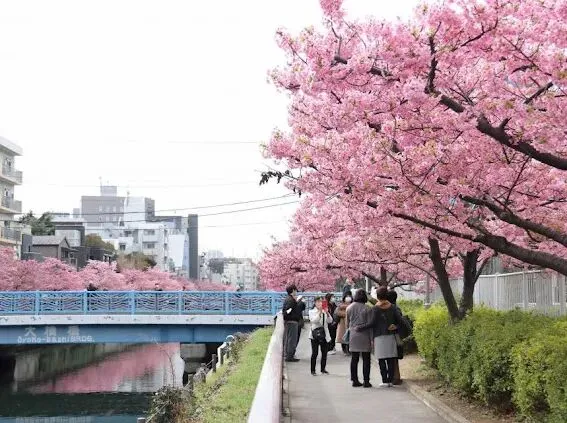 不少人以为要到3、4月才看的到樱花,其实2月底就可以看到深粉色的河津樱,而东京都内首屈一指的河津樱景点,就在木场公园东侧的大横川沿岸(东阳五丁目附近),从大横桥到泽海桥这段约350米的距离,种植约有80棵的河津樱;源自于静冈县河津町的河津樱花种,花期较一般樱花早,大约2月中旬就开始开花,3月上旬时迎来满开时期,游客可以在大横川沿岸步道上,边漫步边欣赏倒映在河面上的粉红樱花景色,美不胜收。