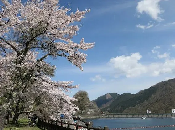 位于“多摩地区”秩父奥多摩甲斐国立公园内的“奥多摩湖”,是一座四处环绕蓊郁树林的人造湖,正式名称为“小河内贮水池”,为东京都民的重要用水来源;每年四月上旬湖畔的樱花盛开,从湖边到大麦代展望台可一路欣赏染井吉野樱、大岛樱与山樱等争奇斗艳,樱花在平静的湖面上呈现倒影,交织出美丽景象,宛如世外桃源。