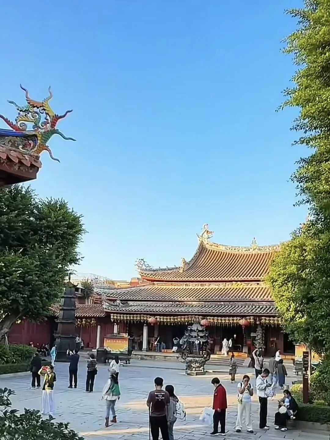 ✅打卡点:关岳庙正殿(拍“关羽、岳飞”神像)、剪瓷雕(拍“龙、凤”细节)、戏台(拍“闽南戏曲”场景)。