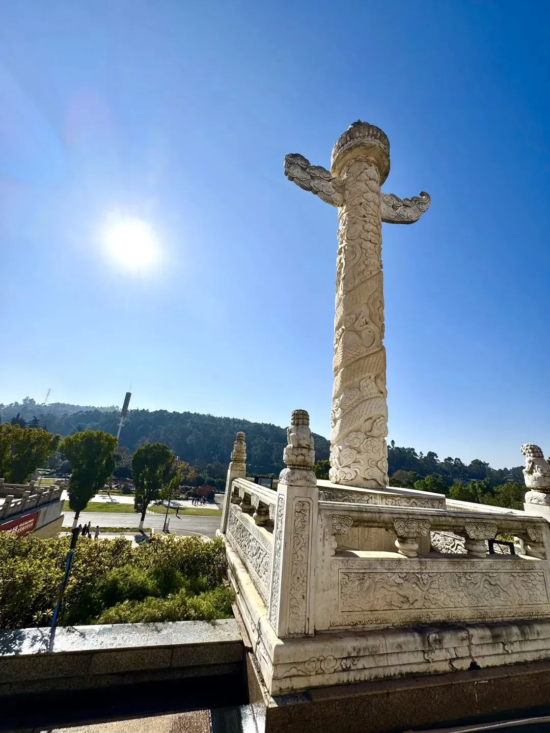 还好“中国馆”没有围,只是大门紧闭,还可以拍大门的照,可以拍华表的照。