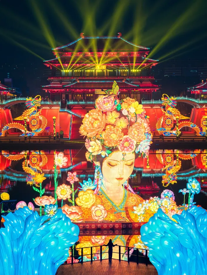 晚上才是重头戏!灯火璀璨,整个园子像是穿越回了盛唐。
