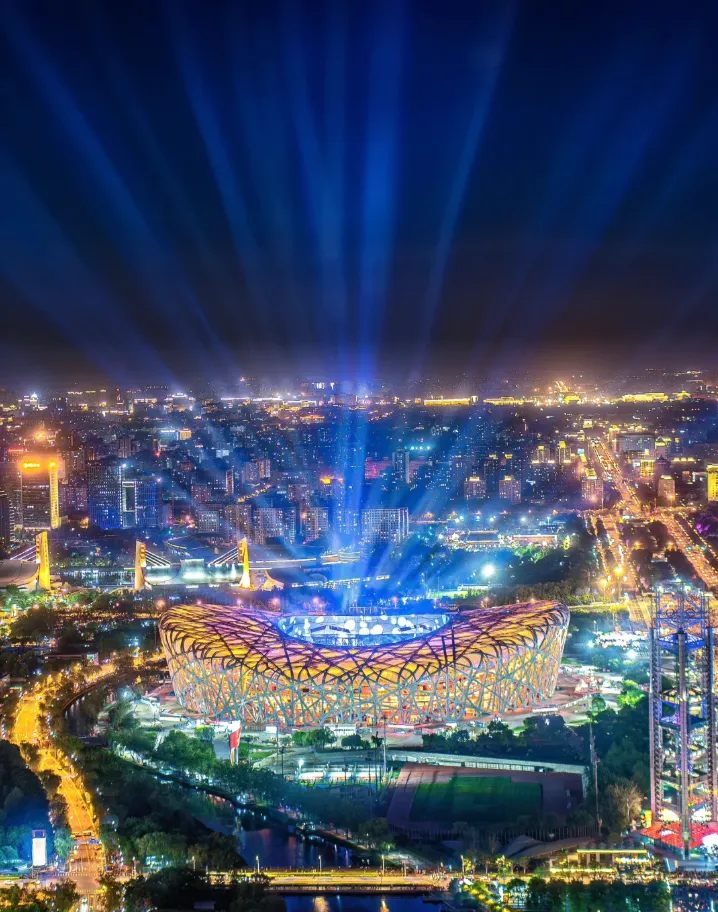 晚上去更好看!鸟巢亮灯的时候,红彤彤的,特别壮观。玲珑塔也亮着,整个公园像科幻电影里的场景。