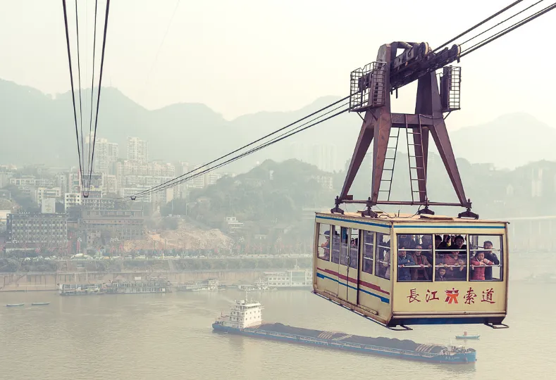 二、长江索道 乘坐长江索道,游客可以俯瞰山城的美妙市景,感受长江的壮阔与浩渺。