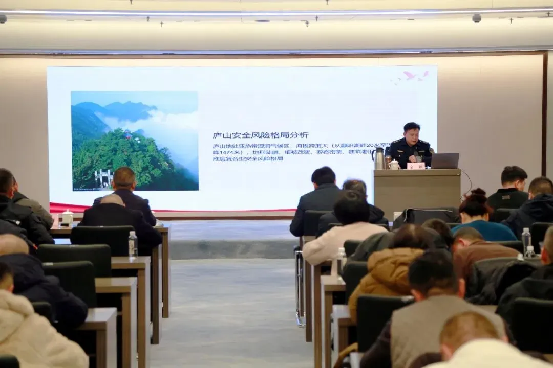1月18日,庐山景区安全知识培训讲座在庐山国际会议中心举行。庐山市(局)文化广电和旅游发展委员会党委书记、主任况荣发主持并作总结讲话,庐山市应急管理局局长金翔授课,200余名景区部门、单位、企业、市场主体中层以上干部参加培训。