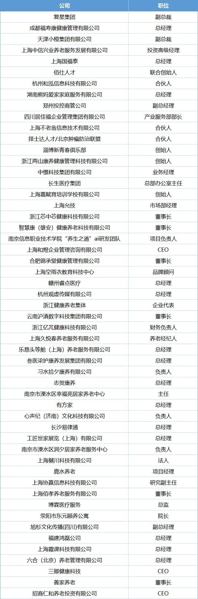 截至目前,大会已吸引蒙牛、复星、携程等600+家来自全国各地的企业报名参会,覆盖银发消费、文娱旅游、养老服务、医疗健康、养老金融、智能科技等产业全赛道,等你链接。