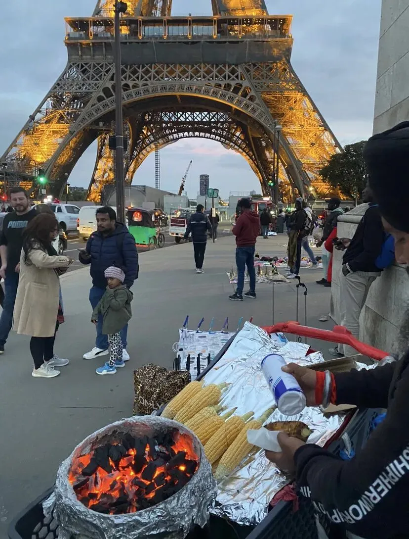 跟国内的各大景区卖的都是水煮玉米不同,欧洲更常见的是烤玉米。