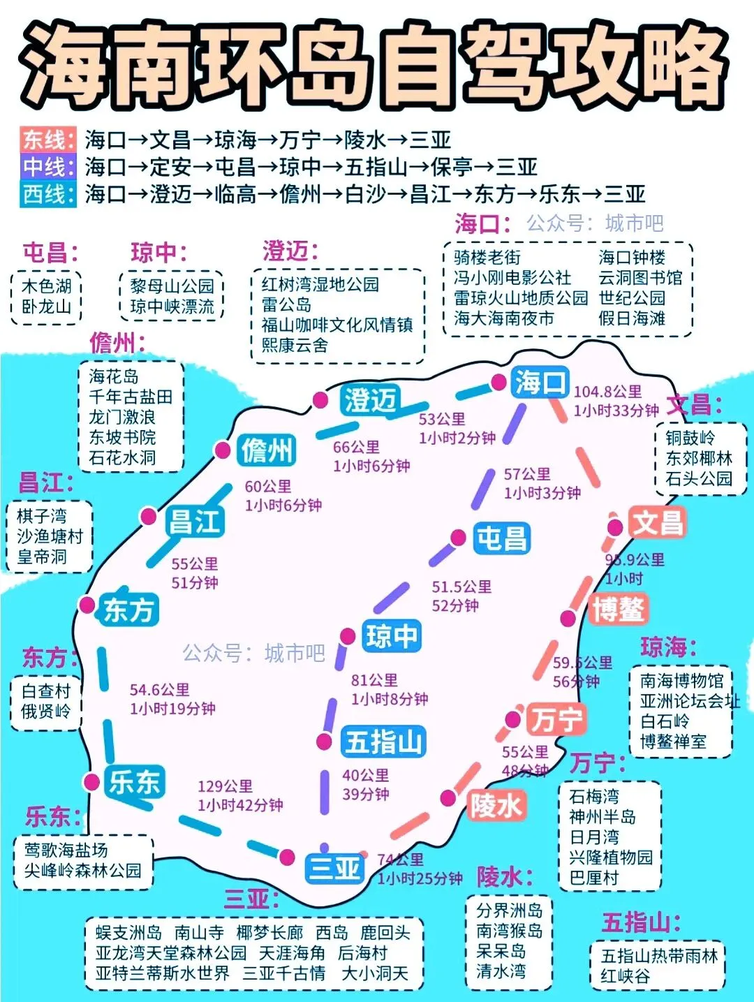 游玩海南的最佳方式推荐:环岛自驾,最佳观海路线:海南环岛旅游公里东线(被网友誉为“中国最美环海公路”,全程约450公里):(游玩时间,建议4~5天)