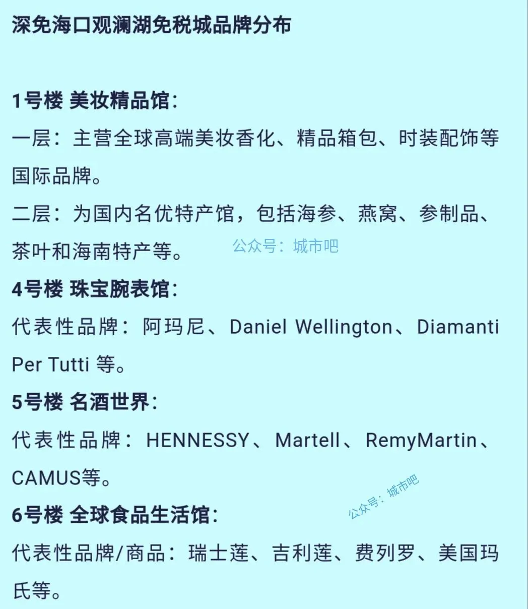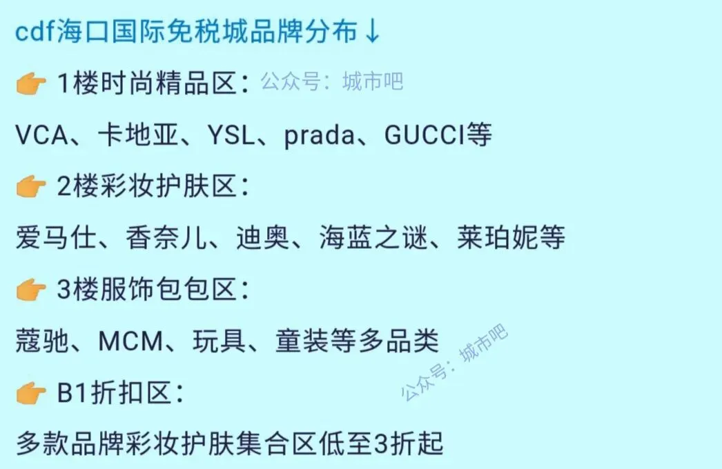 | 海口 | cdf海口国际免税城 | 中免集团 | 海口市秀英区海色路5号 | 全球最大单体免税店,超800个国际品牌,奢侈品、美妆、腕表、酒水等品类最全。 |