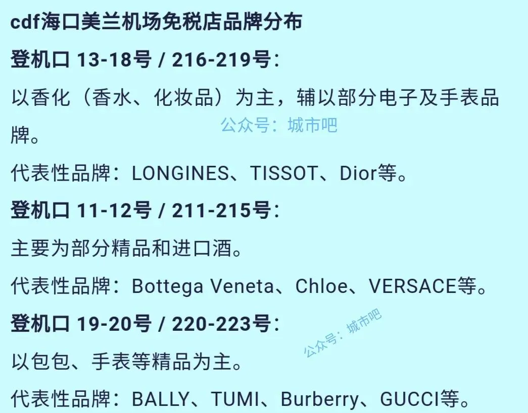 | cdf海口美兰机场免税店 | 中免集团 | 美兰国际机场隔离区内 | 离岛前最后一站,即买即提,美妆护肤品优惠活动频繁。 | |