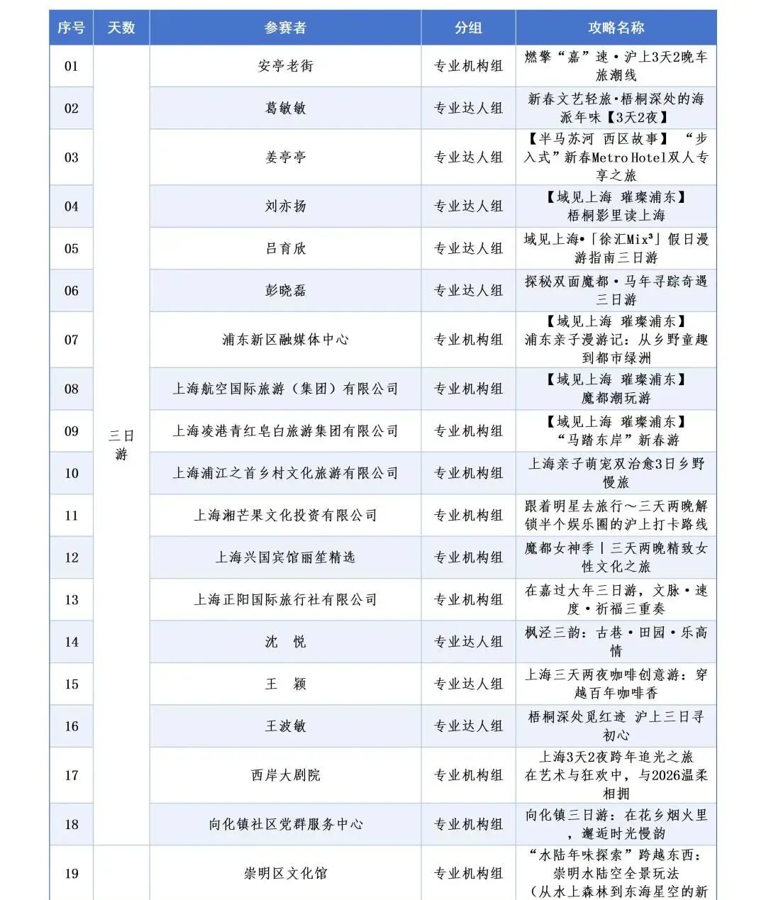 “域见上海”第一届旅游攻略超级大赛(第一季)专业赛事组赛事自去年11月18日正式启动以来,历经行业报名动员、攻略创作上传、各区海选推荐、专家评审选拔、网络投票评选和决赛现场路演等六个阶段,现已产生100个上海“多日游”精品旅游攻略。