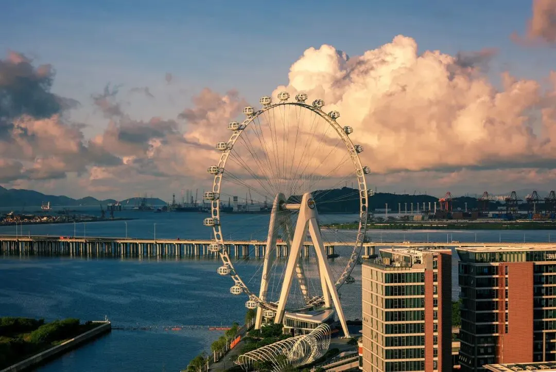- “湾区之光”摩天轮 :位于深圳市宝安区欢乐港湾,是湾区浪漫地标,摩天轮高128米,每个轿厢都是一个移动的空中客厅,可360度欣赏山海城湾的极致风光。