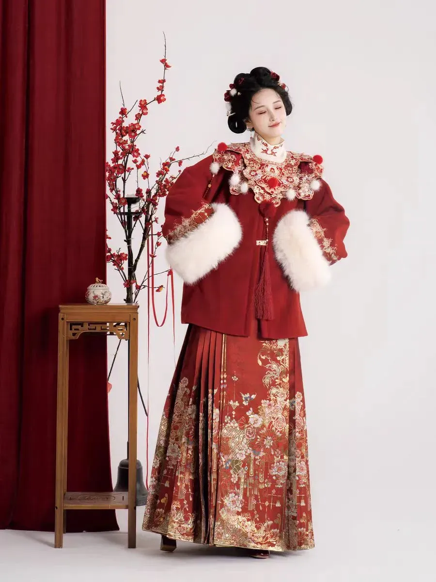 可根据拜年服款式搭配相得益彰的妆造以凸显其魅力。