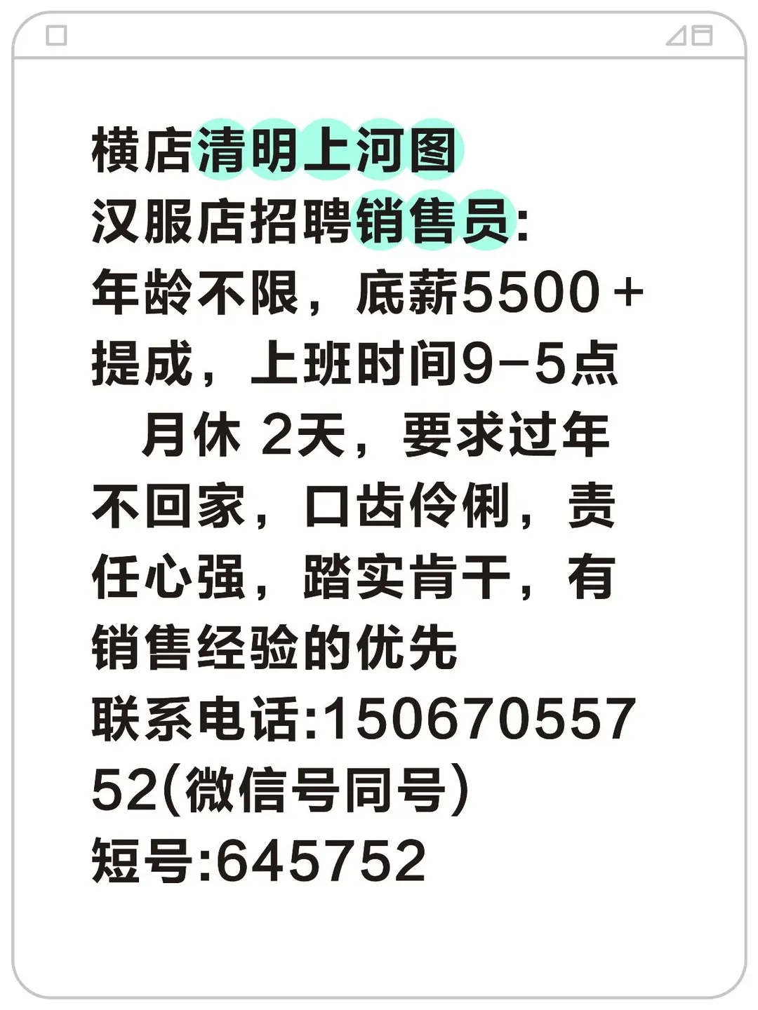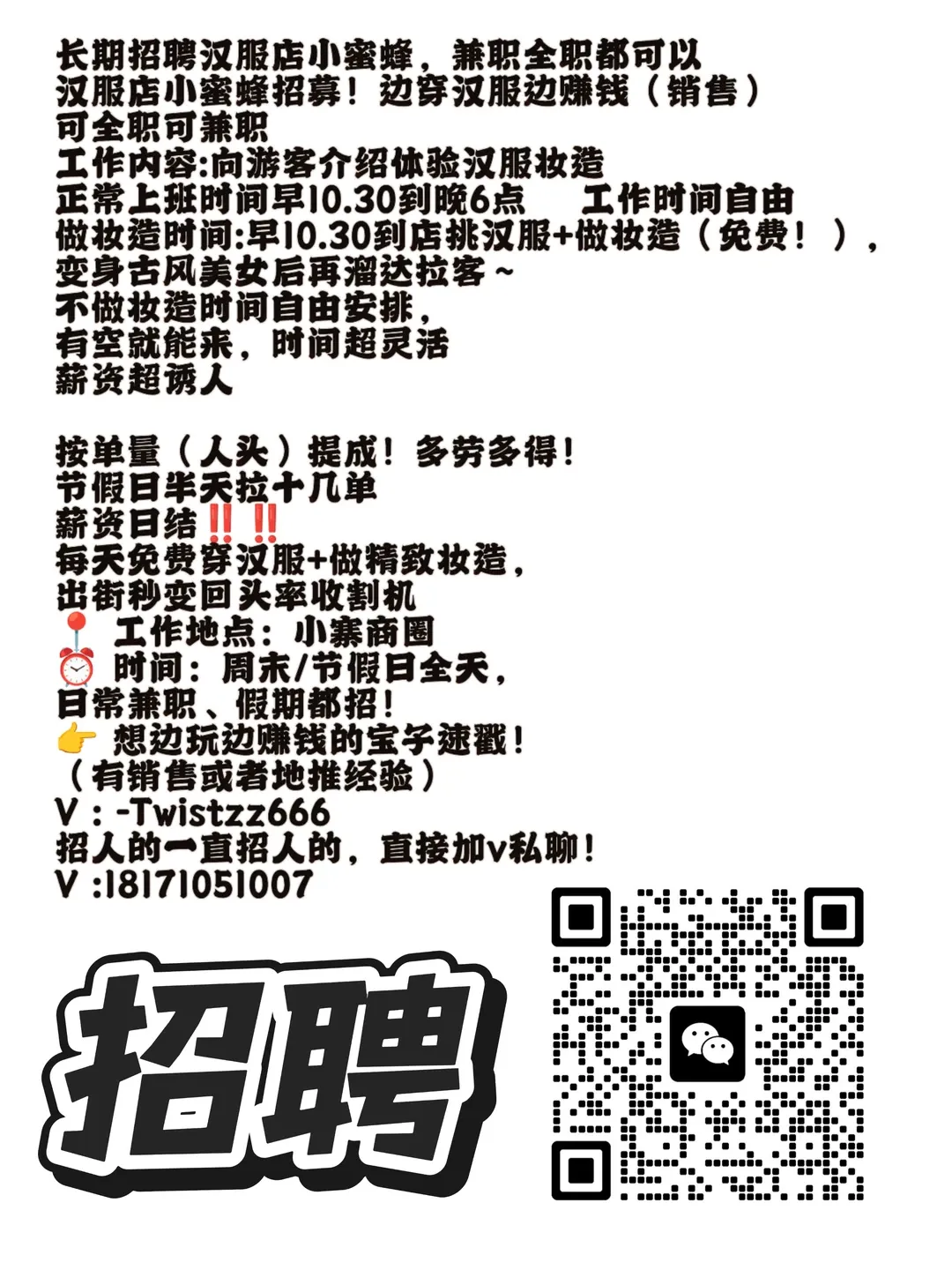 #招人 长期招聘汉服店小蜜蜂,兼职全职都可以