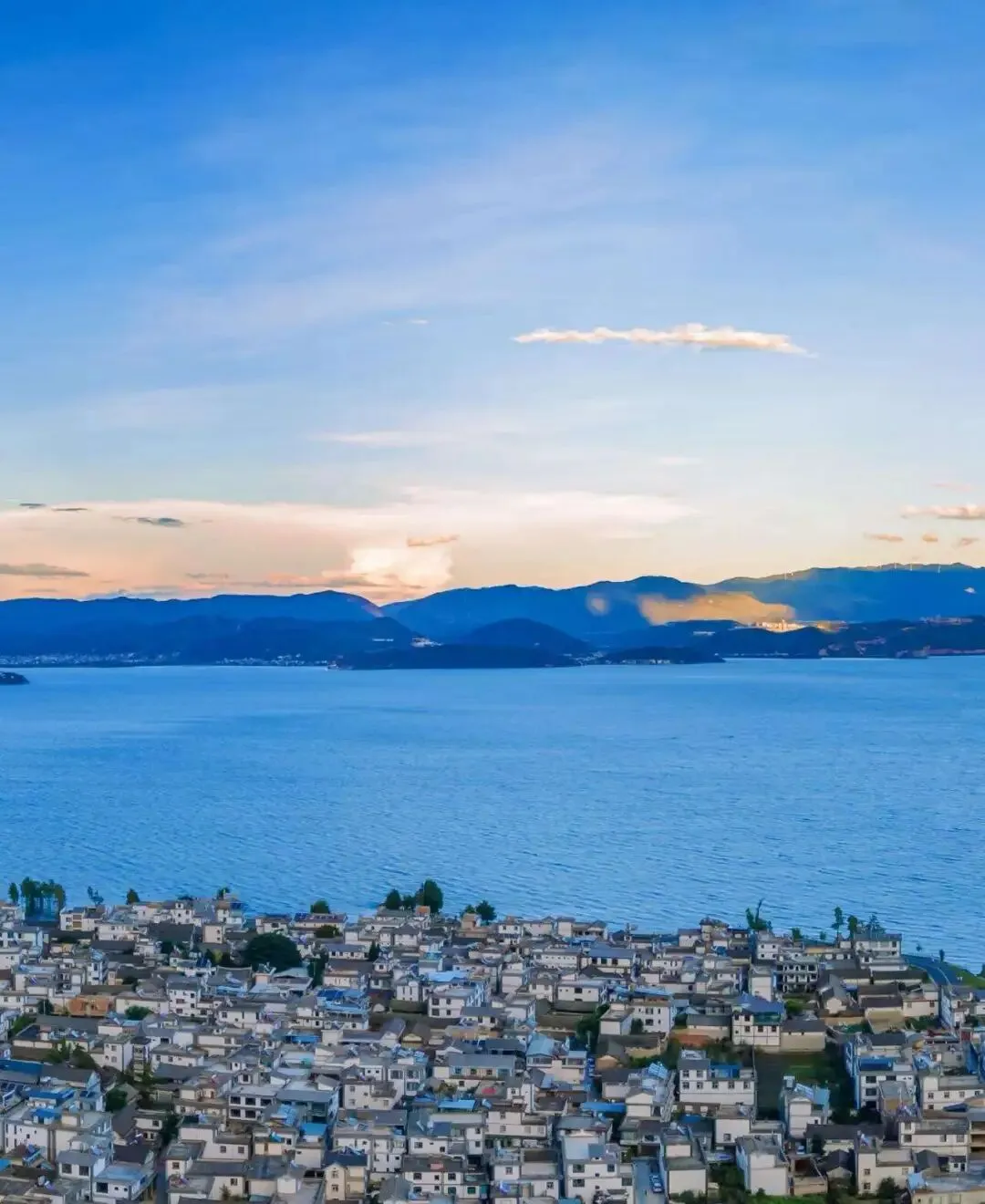 租辆自行车,沿环海.西路.慢慢骑。左边是白族民居的照壁.,右边是水。.有时云把苍山顶盖住,.阳光.从缝里.漏下.来,在水面上洒一.把.碎银子。在双廊找个咖啡馆,.能发呆一下午。