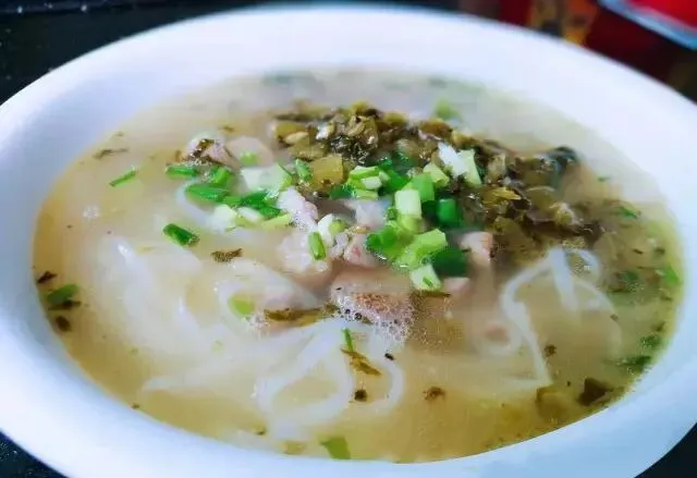 猪骨熬制的高汤汤鲜味美,粉条柔润爽滑、新鲜食材猪杂加瘦肉,营养丰富;配合上蒜蓉辣椒酱,酸辣可口,回味无穷。