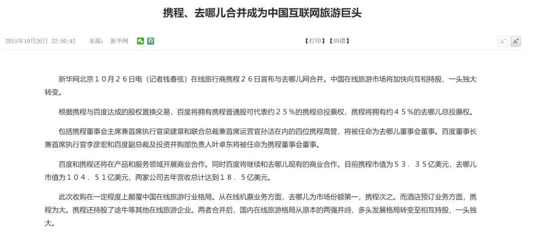 2015年与去哪儿网合并,消除了核心竞争对手;随后对同程旅行等平台的战略投资,进一步巩固了其市场份额优势。