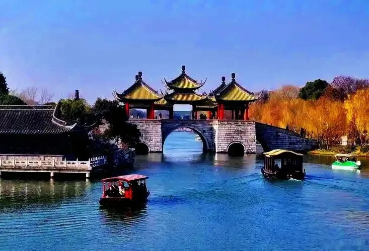 烟花三月下扬州,瘦西湖是诗画中的江南。徐园、小金山、五亭桥,构成经典的园林景观。钓鱼台的三洞叠景,框住白塔与五亭桥的美景。熙春台夜晚的《春江花月夜》实景演出,更是让人穿越时空,领略到古代扬州的繁华与美丽。