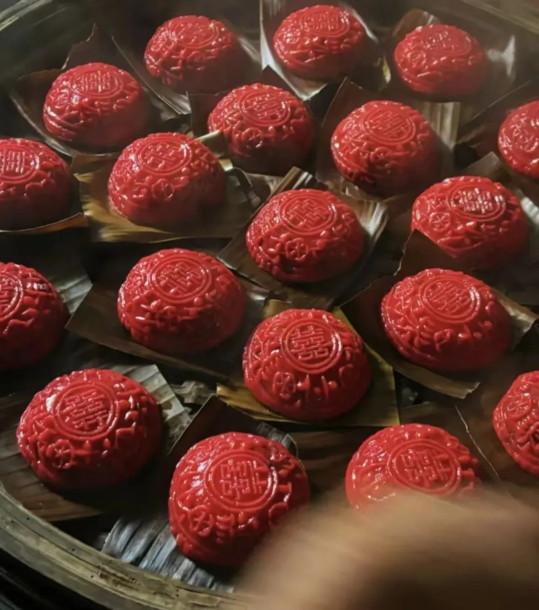 莆田红团:逢年过节必备,算是文化菜,红色的外形寓意红红火火,里面是绿豆馅和糯米馅,再放一个什么叶子上蒸,别有风味,一般是印乌龟和园。