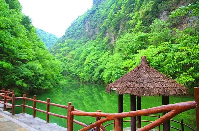 丹鱼湖瀑布是金丝峡景区内的最后第十三级瀑布,因紧邻丹鱼湖得名丹鱼湖瀑布。丹鱼湖瀑布的地质岩体也是碳酸盐钙化而形成,瀑布一泻而下,高差约17米,遇上多雨季节,瀑布沿着整面岩体留下,真的是一幅瑰丽壮观之景。
