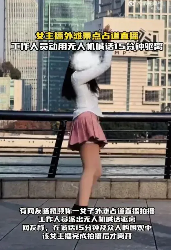 同时,《治安管理处罚法》第二十六条明确将 “扰乱车站、港口、码头、公园等公共场所秩序” 列为处罚情形,外滩作为知名公共游览区域,其正常秩序受该法保护。该女子经警方无人机15分钟喊话劝阻仍不停止行为,若经调查认定构成扰乱公共场所秩序,可能面临相关处罚。直播平台方面,根据《直播电商监督管理办法》,平台需履行动态监测、违规处置等义务,加强算法监管,对可能违规的主播采取限流、暂停直播等措施。