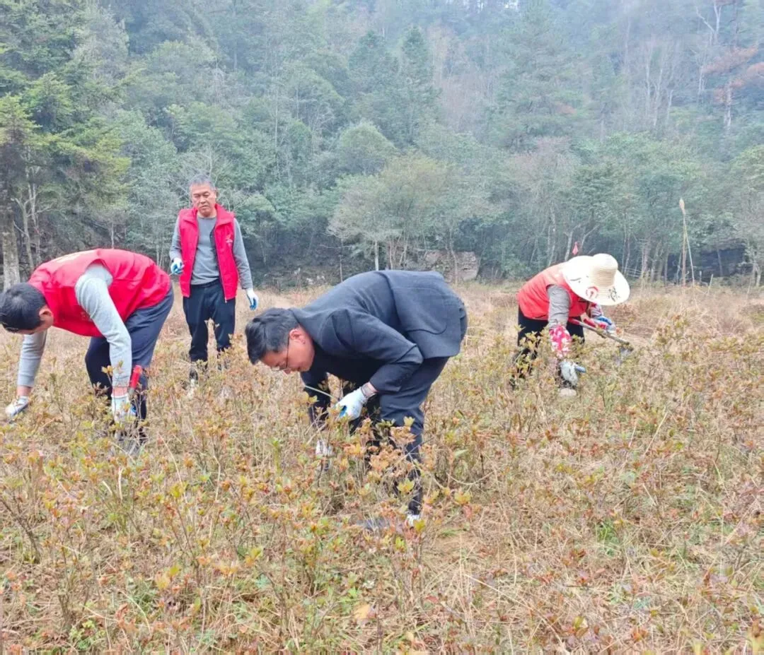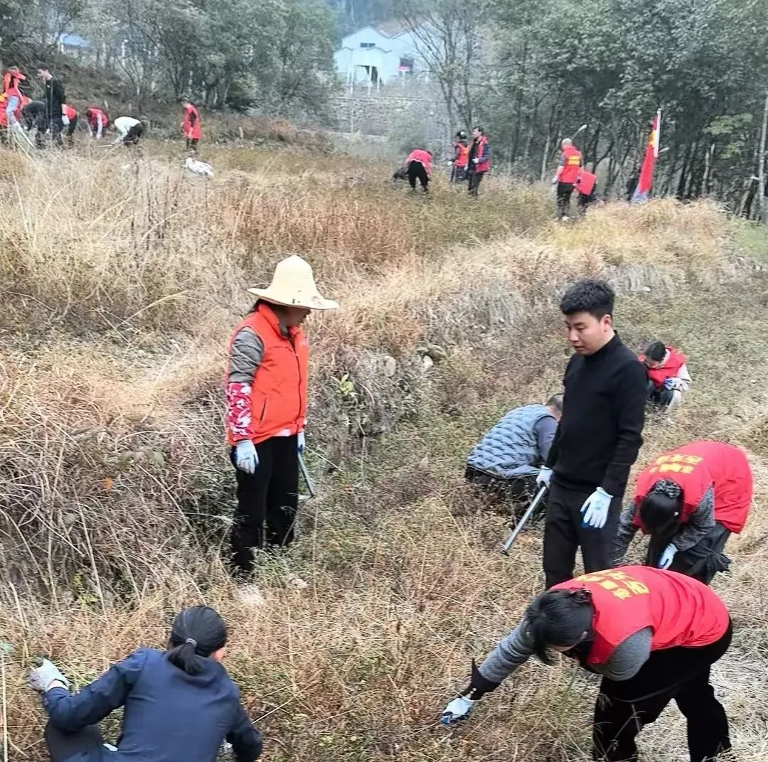 活动现场,大家身着志愿服装,手持镰刀、铁锹等工具,迅速分工、协同作战,有序开展清洁整治行动。