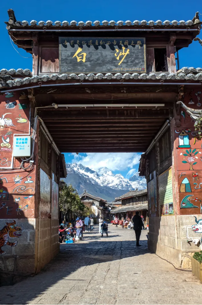 云南丽江白沙古镇冬季 【拍照推荐】 •白沙壁画:参观白沙壁画,欣赏纳西族的传统艺术。在壁画前拍摄人像,感受历史与文化的交融。注意保护壁画,不要触摸。 •玉湖巷:在玉湖巷,以雪山为背景,拍摄纳西民居。青瓦白墙的建筑与远处的雪山形成鲜明对比,画面富有层次感。 实用贴士: •交通:可乘坐6路公交车前往白沙古镇,或从丽江古城包车前往,车程约20分钟。 •美食推荐:在老茶馆喝20元普洱茶,搭配丽江粑粑,品尝纳西族的传统美食。 •注意事项:尊重当地的风俗习惯,不要随意进入村民家中。 束河古镇,比大研古城更清净的“发呆圣地”。400年历史的青龙桥覆着薄霜,浅溪穿镇而过,路边手工打银铺的叮当声格外悦耳。临水找家小店坐下,看阳光在水面晃动,或是沿着田埂散步,感受“车马邮件都慢”的旧时光。