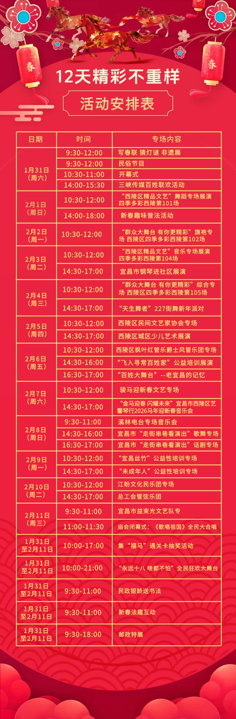 时间:2026年第十八届西陵庙会暨宜昌供销集市开幕式1月31日10:30—11:00