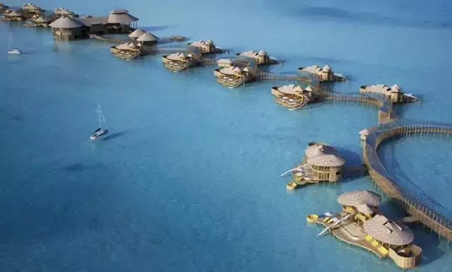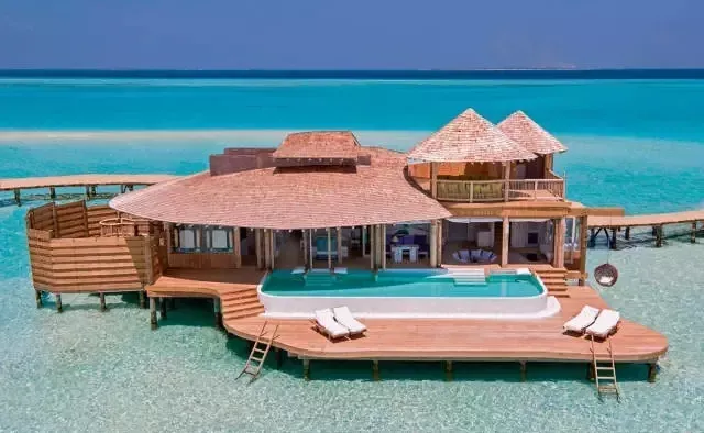 到马尔代夫旅游,不能不住一下那里的"水上屋",如果说马尔代夫的1000多个岛屿犹如颗颗钻石镶嵌在碧蓝的大海上,那么"水上屋"就是这颗颗钻石上的名片。