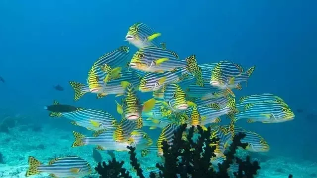 1.要能看到很多鱼和珊瑚;
