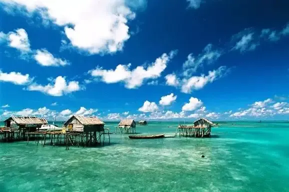 "水上屋"的魅力主要来自于其近乎原始的建造方式,每间屋子都是独立的,斜顶木屋的样式,原生态的茅草顶,屋子距离海岸大约10米左右,凭借一座座木桥连接到岸边,有的"水上屋"更为浪漫,没有木桥连接,而是靠船摆渡过去。